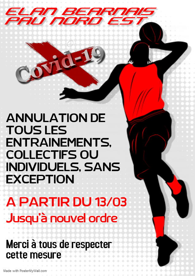 Afin de faire face à la crise sanitaire liée à la pandémie de Coronavirus COVID-19, la FFBB, La Ligue Aquitaine et le Comité 64 ont décidé de reporter l'ensemble de ses compétions seniors et jeunes à partir du vendredi 13 mars et ce jusqu'au mardi 31 mars 2020 inclus.
